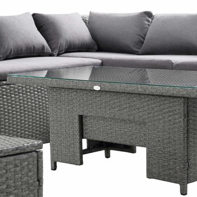 | Dimensioni del set di divani d'angolo: | W 222 x D 168,5 x H 71 cm | Dimensione della tabella in aumento: | W 118 x D 60 x H 51-69 cm |